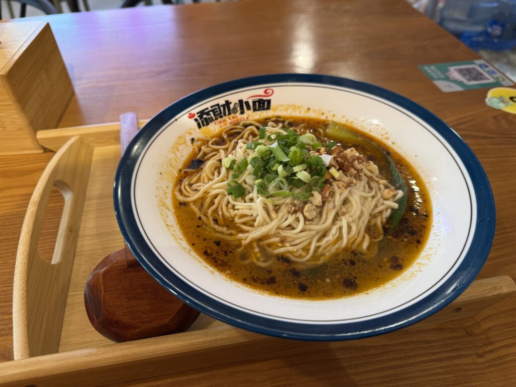 I chose a promising-seeming restaurant, walked in, and ordered a bowl of their signature noodles in Mandarin for $2.84 USD. They were essentially flavorless, but I tried my best to finish them out of politeness.