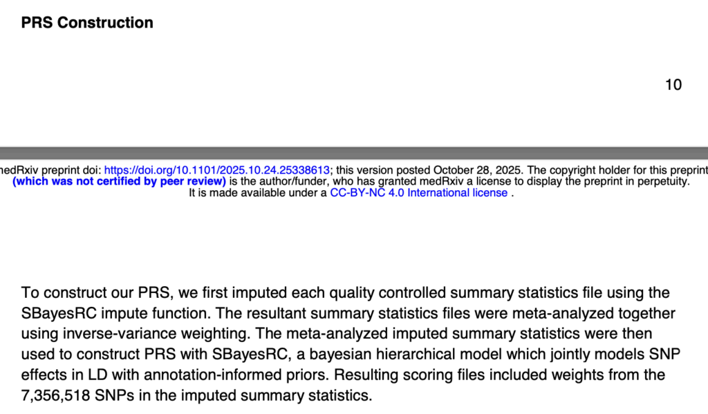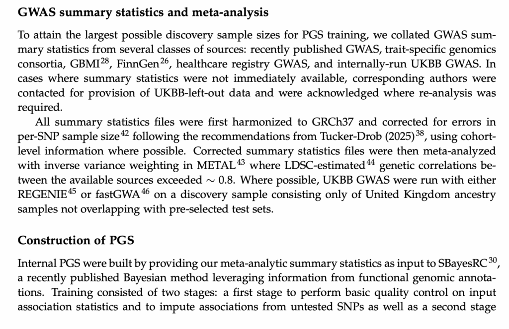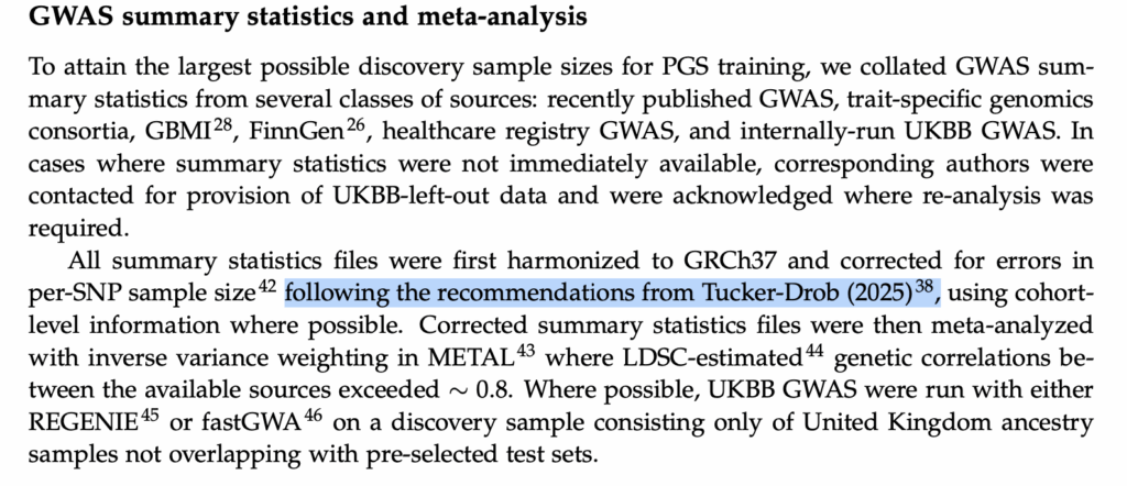 Finally, in their respective descriptions of how they processed GWAS data from multiple cohorts as inputs to their polygenic scores, they reference the exact same 2025 paper from Tucker-Drob in the quality control step.