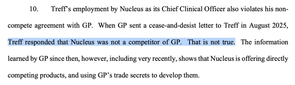 The entire matter is frankly a little baffling to me. It’s obvious that Nucleus and GP are now competitors, and Treff and Metzgar both signed 18-month noncompetes with GP, so what did they expect when they joined Nucleus and immediately launched polygenic scoring for embryos?