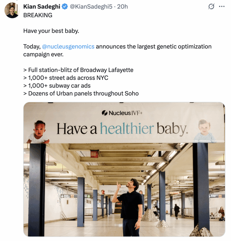 This is obviously absurd given that Nucleus themselves develop and sell polygenic risk scores and clearly indicates that nobody bothered to even skim this post before putting it online. It appears that they’ve updated the post to remove the egregious sections since the page was last archived (which appears to be shortly after Nucleus launched their own IVF product), but it is a curious strategy to push out AI slop criticizing a company’s product on ethical grounds and then immediately pull it after they themselves began offering the product.